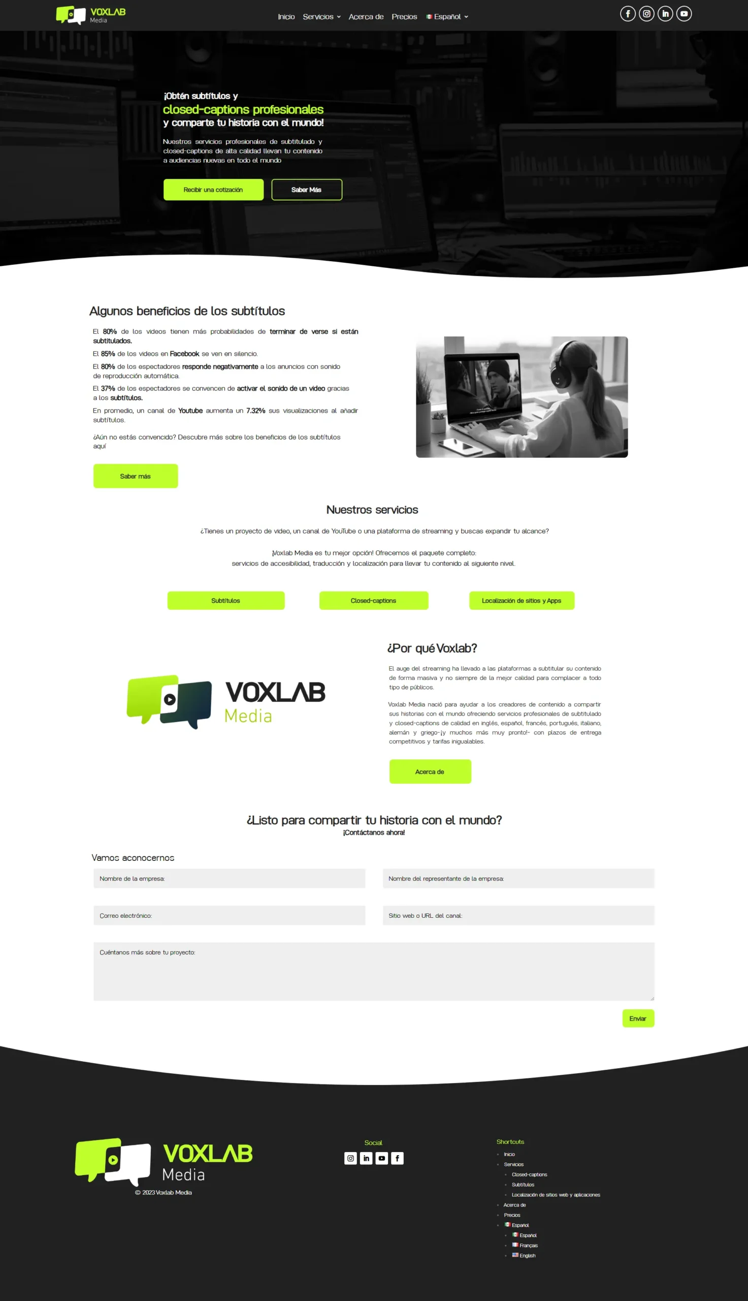 5 páginas: Inicio, Nosotros, Contacto, Servicios.